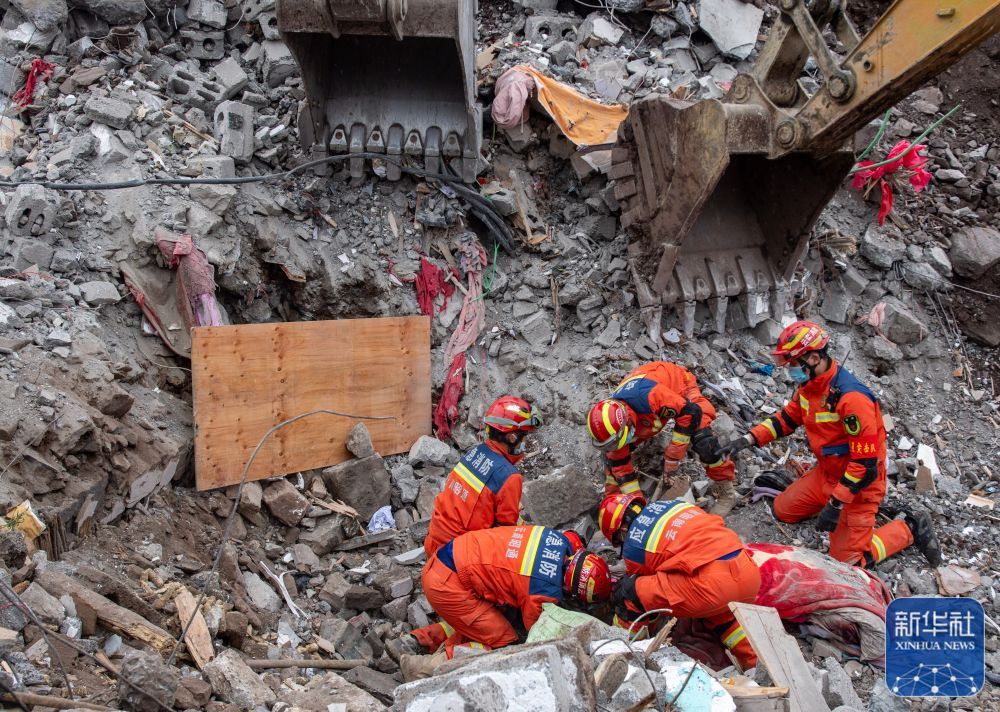 雪花飘飞,寒风凛冽。新华社记者在救援现场看到,搜救工作持续进行,一台台挖掘机有序开展作业,各方救援力量紧密协作,全力攻坚克难。