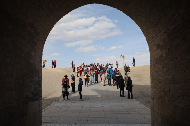 2023年5月10日,游客在嘉峪关关城景区游玩。 新华社每日电讯记者 马希平 摄
