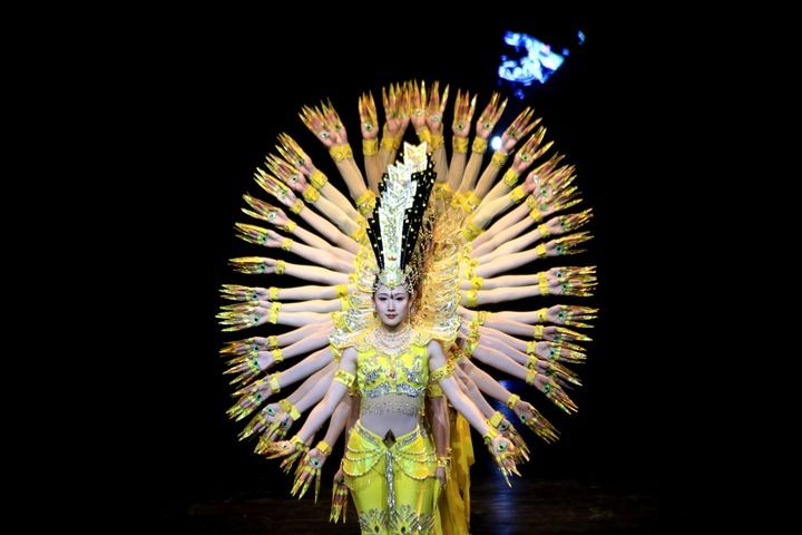 2023年9月10日晚,在甘肃敦煌大剧院,演员在大型情景音画剧《千手千眼》中表演。新华社发(张晓亮 摄)