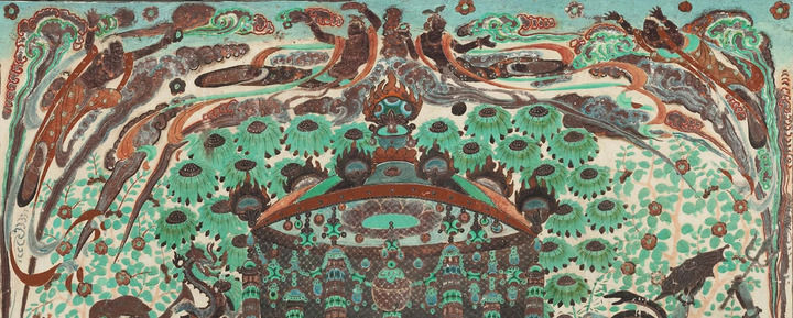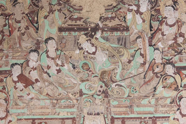 莫高窟第112窟-壁画-主室北壁-报恩经变之乐舞图。(敦煌研究院供图)