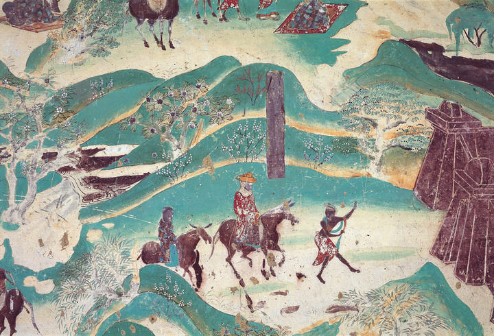 莫高窟第217窟-南壁西侧-春山踏青-盛唐。(敦煌研究院供图)