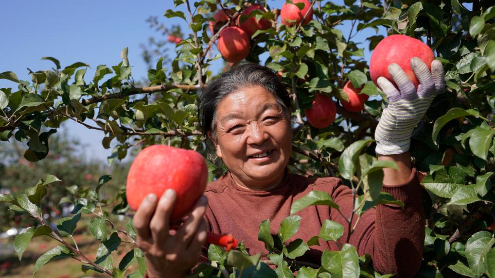 喜获丰收的大宁‘宁脆’苹果(资料图片)。新华社发(高本增摄)