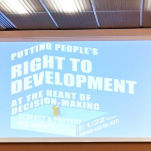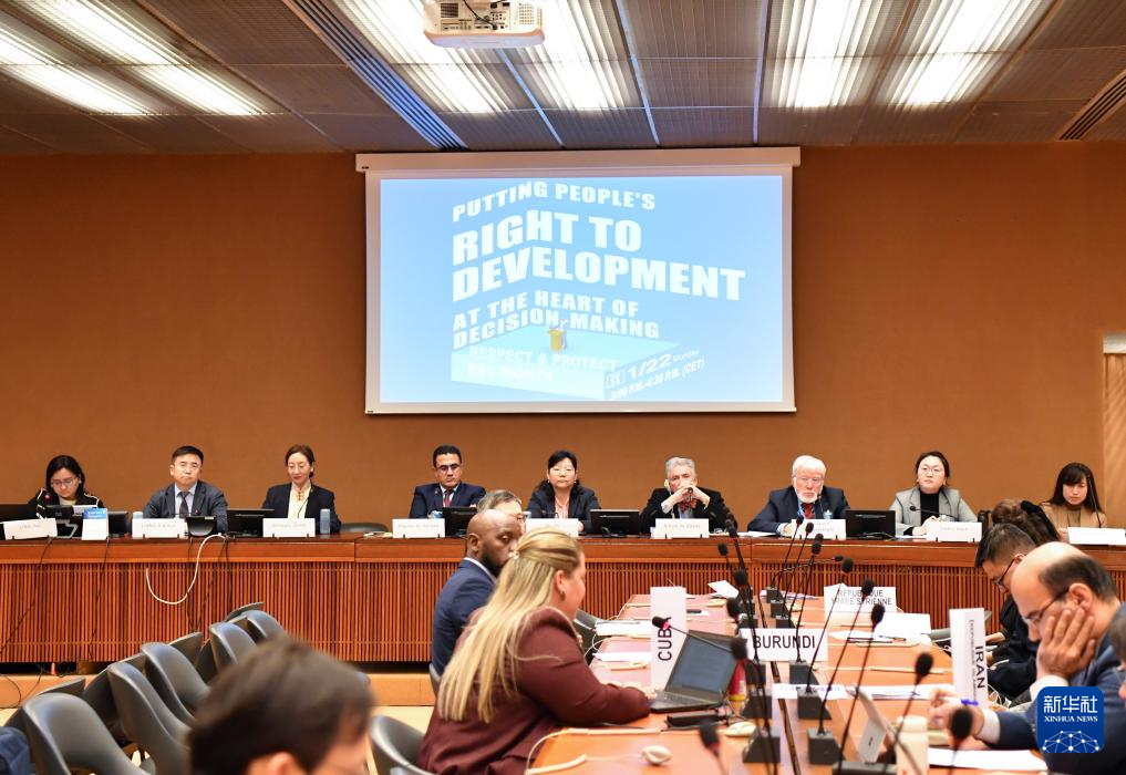 这是1月22日在瑞士日内瓦拍摄的联合国人权理事会第四轮国别人权审议工作组会议主题边会“将发展置于议程中心:经社文权利的保障”会议现场。新华社记者 连漪 摄
