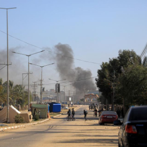 1月22日,加沙地带南部城市汗尤尼斯遭到以军攻击后升起浓烟。新华社发(里泽克·阿卜杜勒贾瓦德摄)
