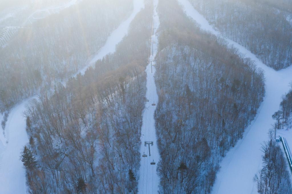 图为黑龙江省亚布力滑雪旅游度假区的缆车和滑雪道(无人机照片)。新华社记者 谢剑飞 摄