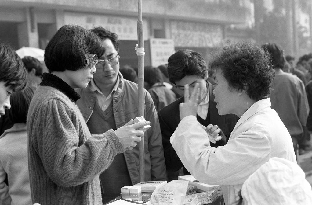1992年春运期间,广州铁路中心医院在广州火车站设立医疗点为旅客治病送药。 新华社记者潘家珉摄