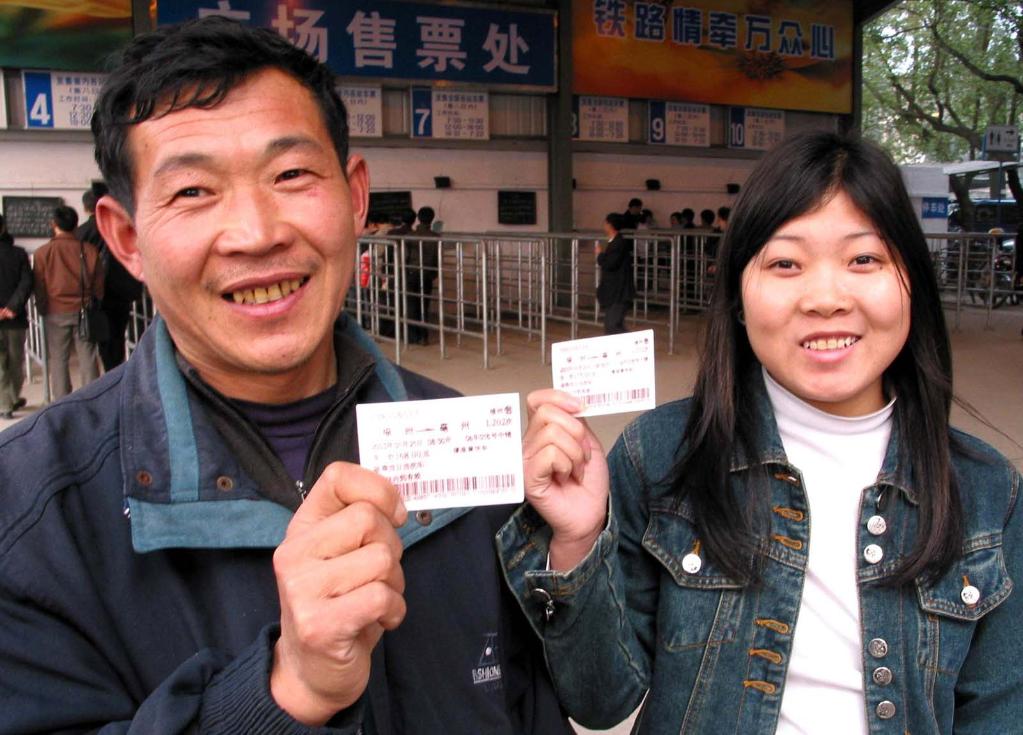 2003年1月20日,来自安徽的程勉珍父女一到福州火车站就买到了回家的火车票。新华社记者丁海军摄