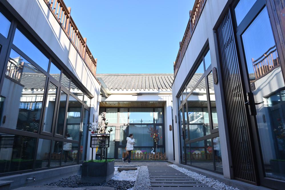 一名游客在潘娜的“知归晓苑”民宿庭院内活动。新华社记者宋为伟 摄