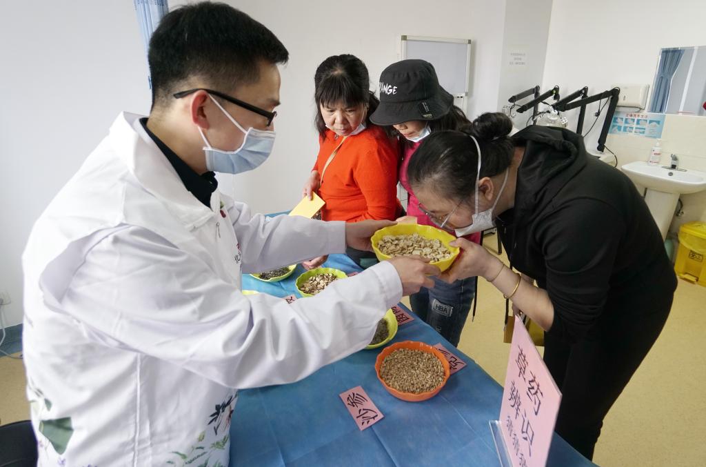 2023年12月8日,居民在北京市丰台区成寿寺街道社区卫生服务中心举办的“中医药文化科普活动”上参加闻香识中药活动。新华社记者李欣 摄