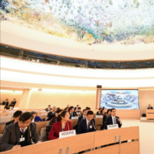 这是1月26日在瑞士日内瓦拍摄的联合国人权理事会国别人权审议工作组第45届会议现场。新华社记者连漪摄
