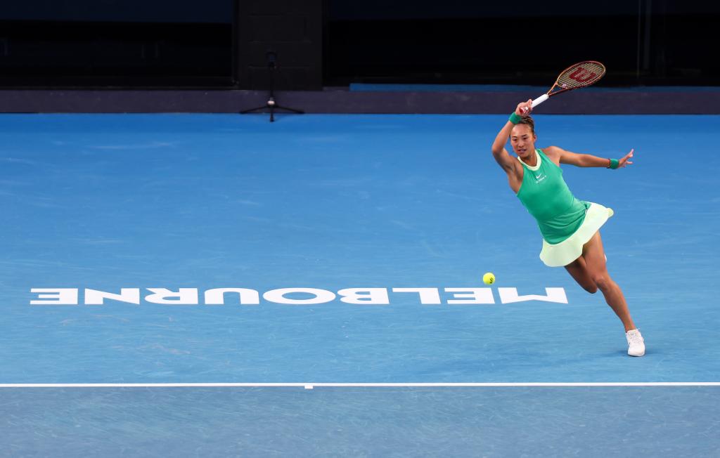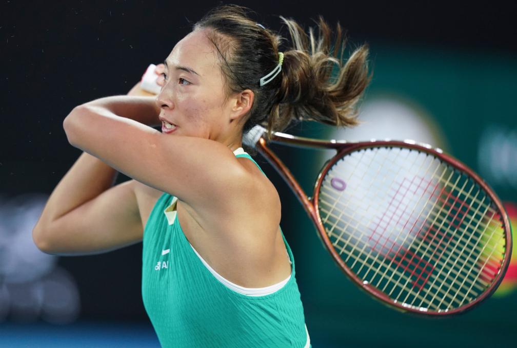 1月24日,郑钦文在澳网四分之一决赛中。新华社记者 马平 摄