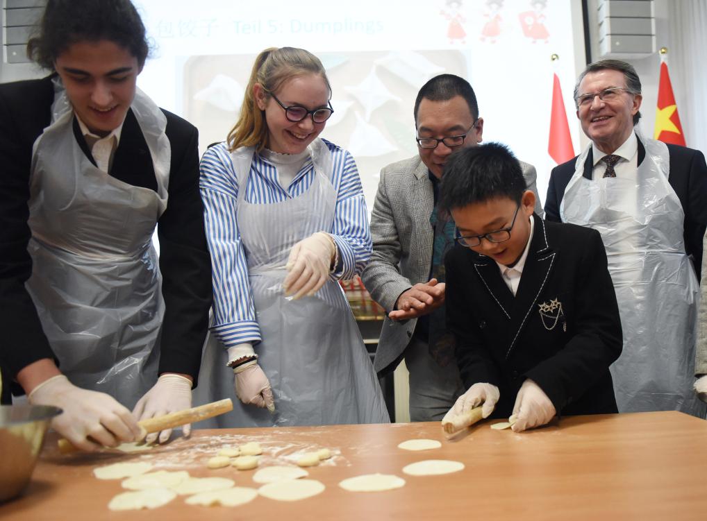 近期,风华中学30多名学生应邀访问奥地利,参观辰纳联邦文理中学、维也纳新城和维也纳,与奥方学生一起上课和联谊。活动当天,风华中学的学生围着红围巾,与辰纳联邦文理中学的学生合唱《新年快乐歌》,一起包饺子、吃饺子,喜迎龙年新春佳节。双方还互相介绍各自的家乡和学校,展示才艺,共同观看中国春节习俗视频。
