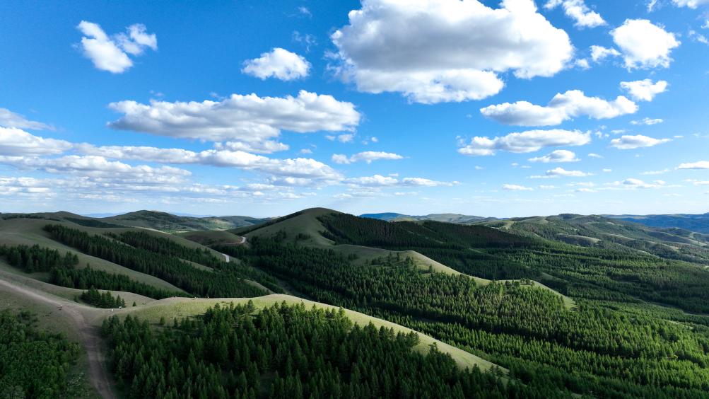 2023年6月11日拍摄的位于内蒙古呼和浩特市的大青山(无人机照片)。新华社记者 安路蒙 摄