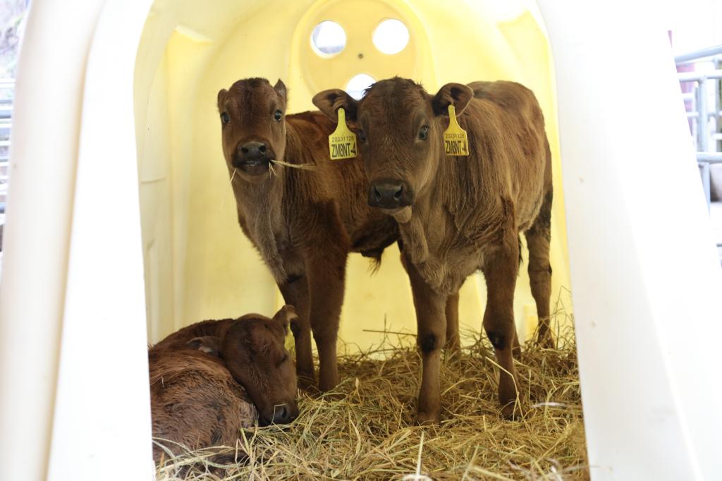 记者在位于云阳县凤鸣镇的肉牛繁育场看到,8头克隆牛目前状态良好,其中1头樟木牛和3头阿沛甲咂牛为剖腹产。除了一头刚出生3天的阿沛甲咂牛暂时卧着不动之外,其他7头克隆牛活泼可爱。