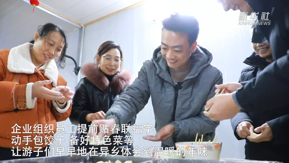 在永州,30余名外地务工人员聚在一起包饺子,提前感受年味。寒冷的冬日里,这群游子在异乡得到了温暖的守护。