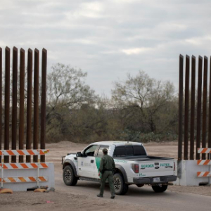 2022年1月7日,在美国得克萨斯州边境城市伊格尔帕斯,巡逻人员走在新建的边境墙边。新华社发(尼克·瓦格纳摄)