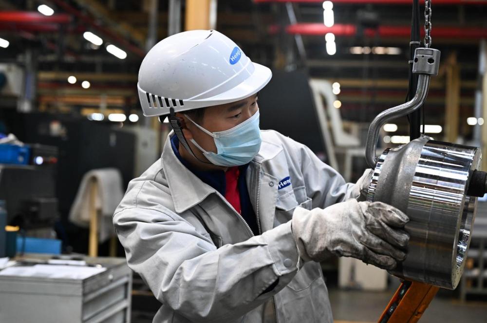 常州市江苏恒立液压股份有限公司内,工人在车间忙碌(2023年12月22日摄)。新华每日电讯记者 季春鹏 摄