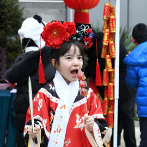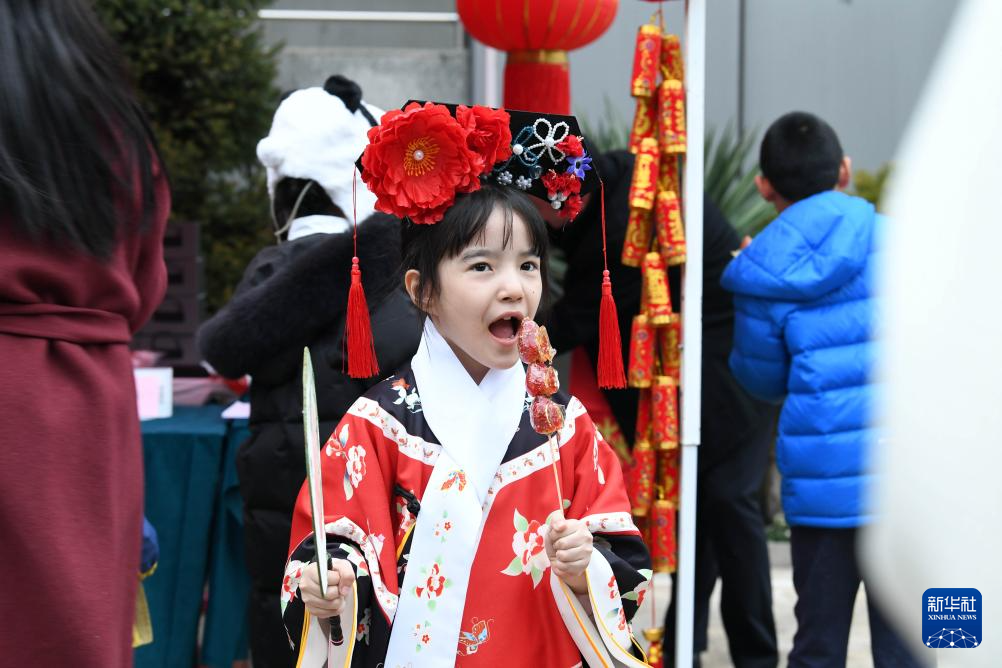 1月25日,在伊朗首都德黑兰,一名小女孩在游园活动上品尝糖葫芦。当日,中国驻伊朗大使馆举办新春招待会。期间,使馆还组织了游园活动。新华社记者 沙达提 摄