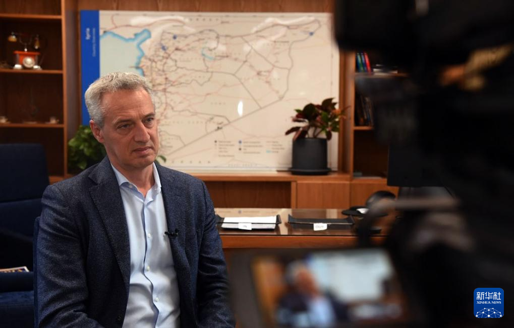 1月21日,联合国世界粮食计划署(世粮署)驻叙利亚代表肯·克罗斯利在叙利亚首都大马士革接受新华社记者专访。新华社发(蒙塞夫摄)