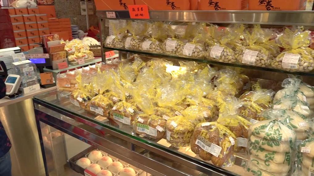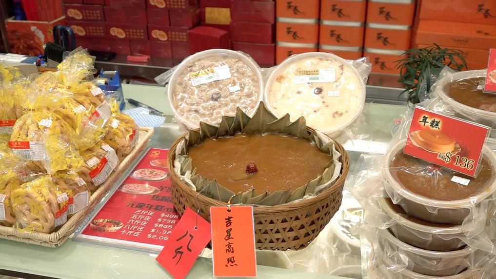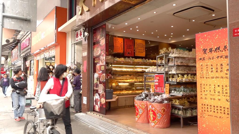 随着中国农历新年的临近,香港的年味也越来越浓。在元朗的一家饼店里,销售贺年糕点的招牌早已挂出,年糕、萝卜糕、瓜子、花生油角等各式贺年点心和小吃摆满货架,扑面而来的浓浓年味吸引着不少市民。