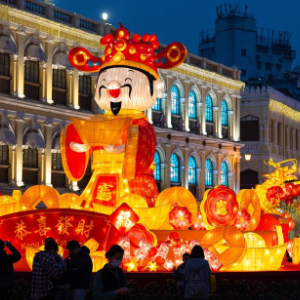 1月29日,市民在澳门议事亭前地观赏春节灯饰。新华社记者 张金加 摄