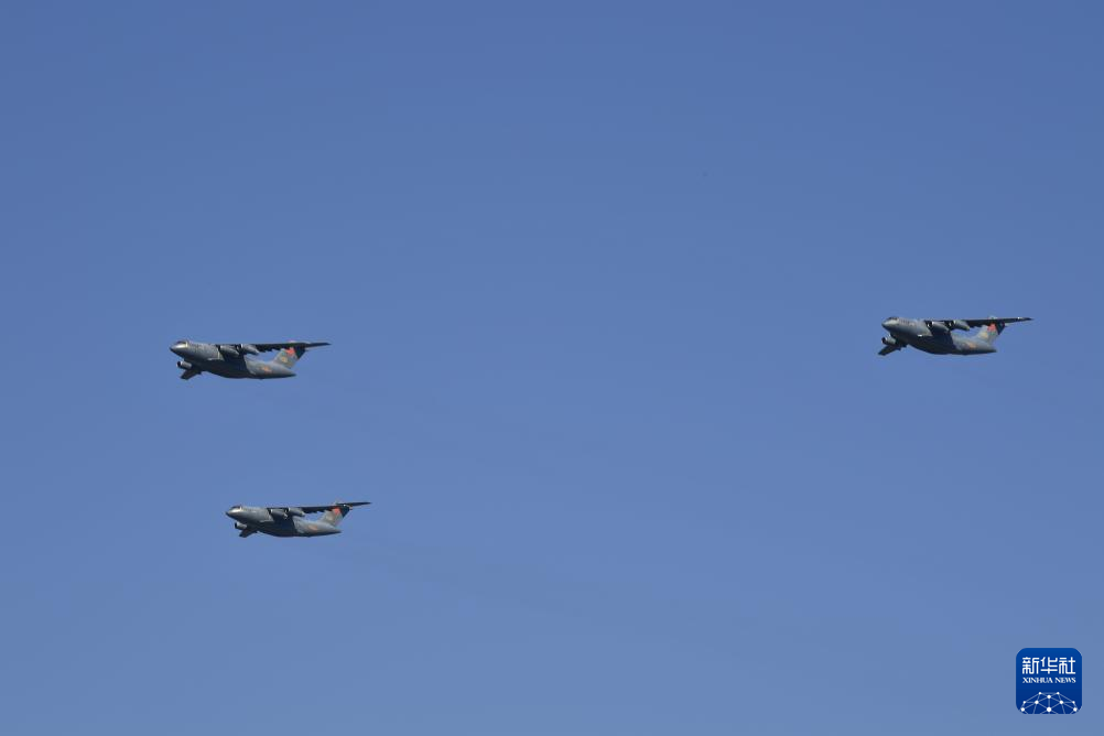 西部战区空军航空兵某团飞行员驾驶运-20飞机进行三机编队飞行训练(资料照片)。新华社发(叶贵童 摄)