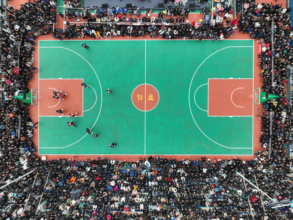 ↑这是2023年3月27日拍摄的贵州省首届“美丽乡村”篮球联赛总决赛比赛现场(无人机照片)。新华社记者 欧东衢 摄