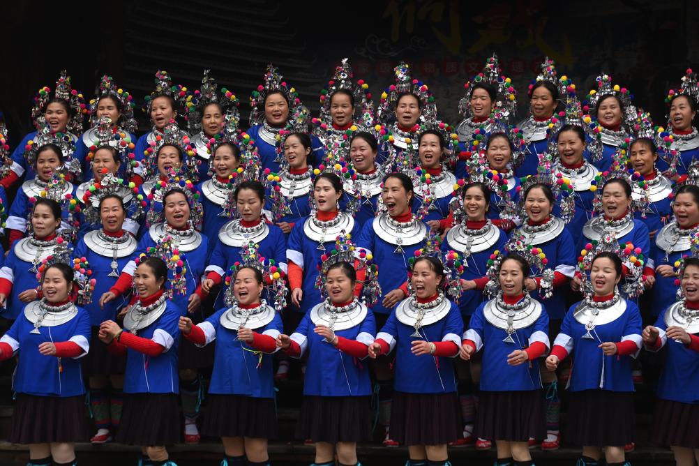 ↑2024年1月28日,在广西三江侗族自治县程阳八寨景区,村民在练习唱侗族大歌。近年来,三江侗族自治县大力发展文旅融合产业,推进旅游产业转型升级,助力乡村振兴。新华社记者 黄孝邦 摄