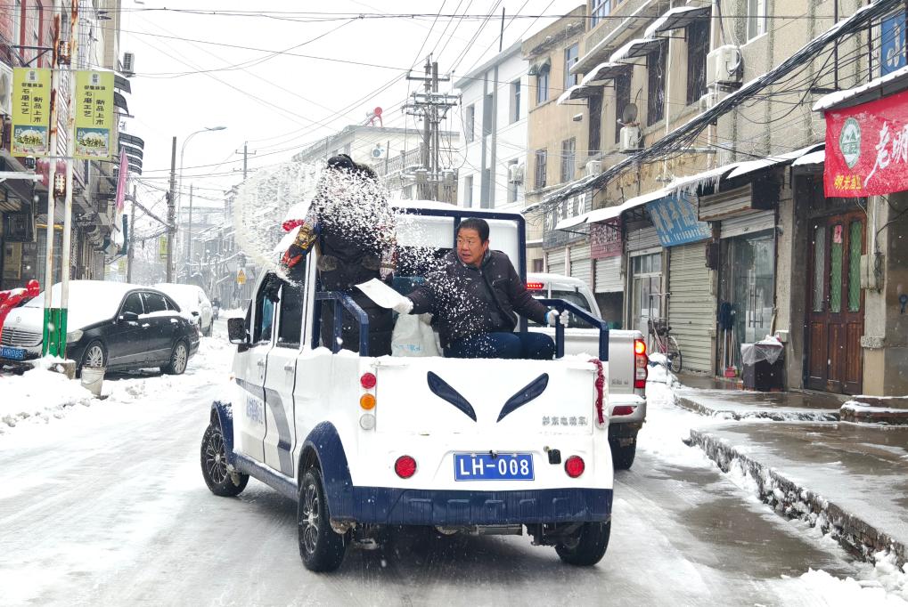 风雪中,正在购置年货的村民卢德朋搓着手,擦掉头上的雪,掀开汽车后备箱,各种物品满满当当。“由于下雪结冰,我今天从家开车到这里用了40分钟左右,天晴时只要10多分钟。”卢德朋指着后备箱里的物品说,“快过年了,年货还是要购置的。你看,这里有铲雪的装备,还有各种蔬菜、烟花等。”