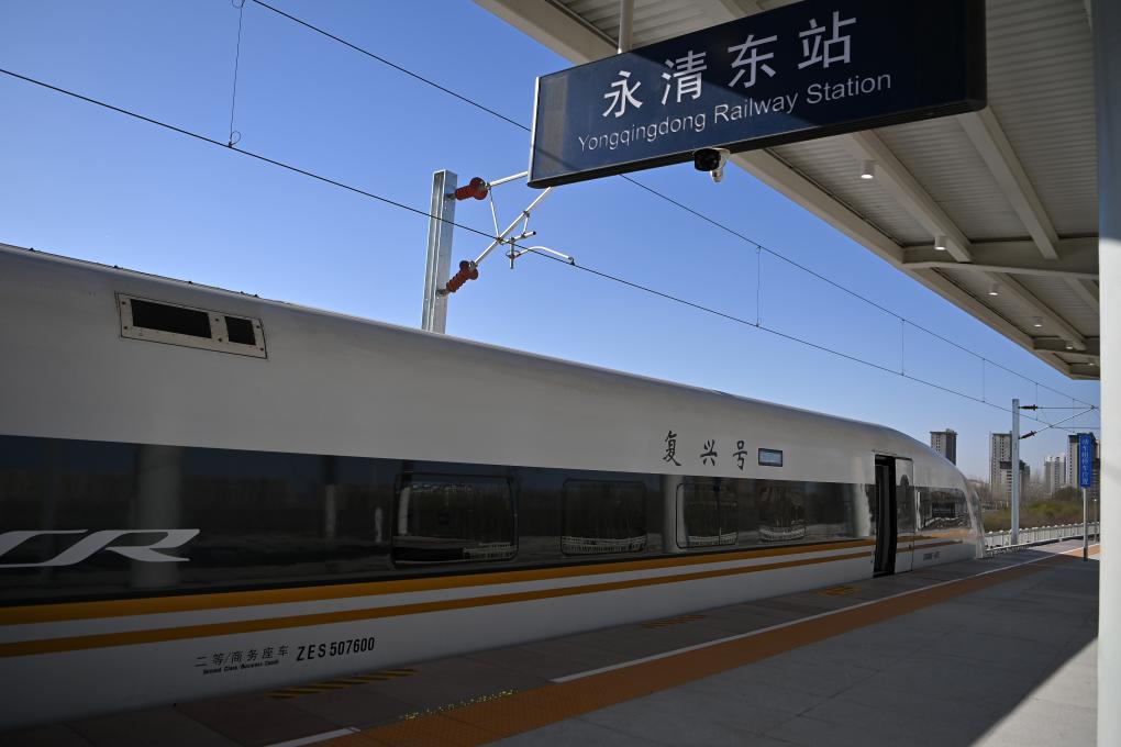 一辆复兴号动车组列车停靠在津兴城际铁路永清东站。新华社记者 李然 摄