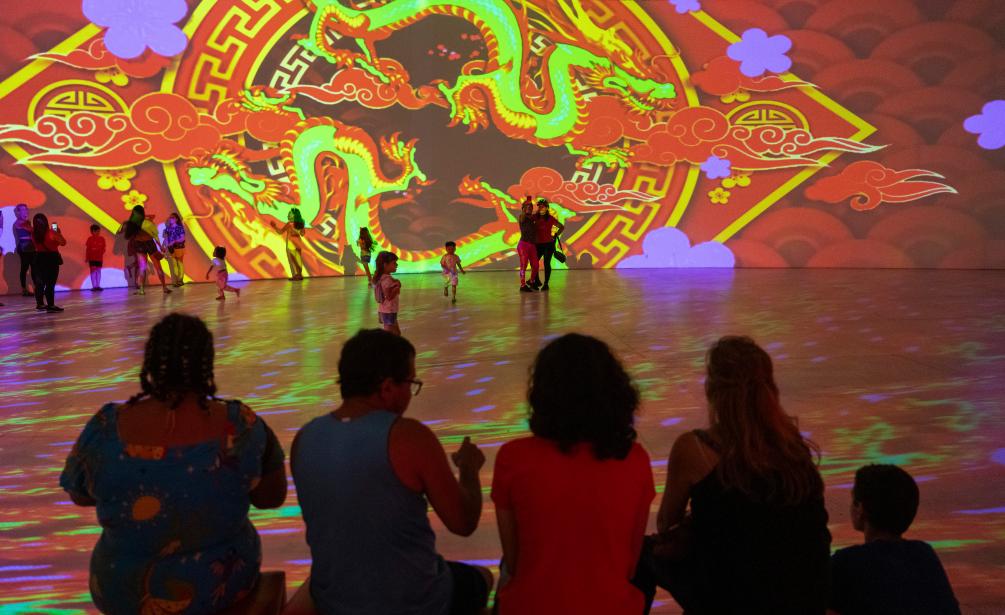 2月3日,在巴西累西腓,人们在中国春节庆祝活动上观赏沉浸式体验展。新华社记者王天聪摄