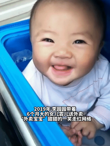 2019年,外卖员李园园带着6个月大的女儿霏儿送外卖,“外卖宝宝”甜甜的一笑走红网络。