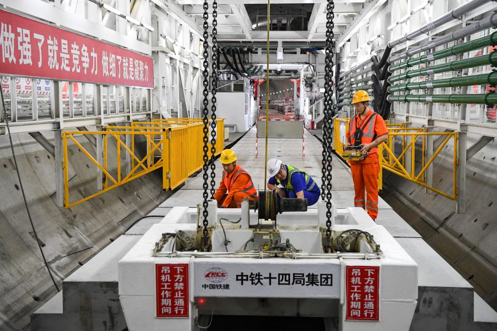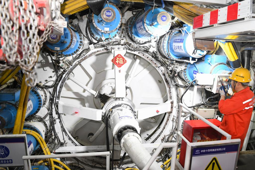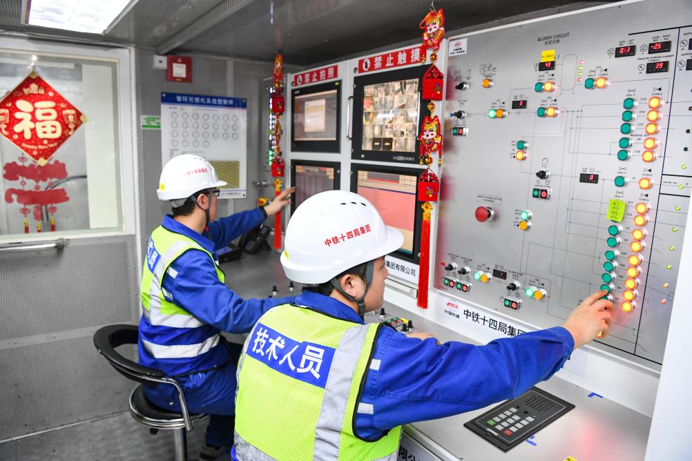 2月4日,中铁十四局施工人员在重庆长江隧道项目现场工作。新华社记者王全超 摄
