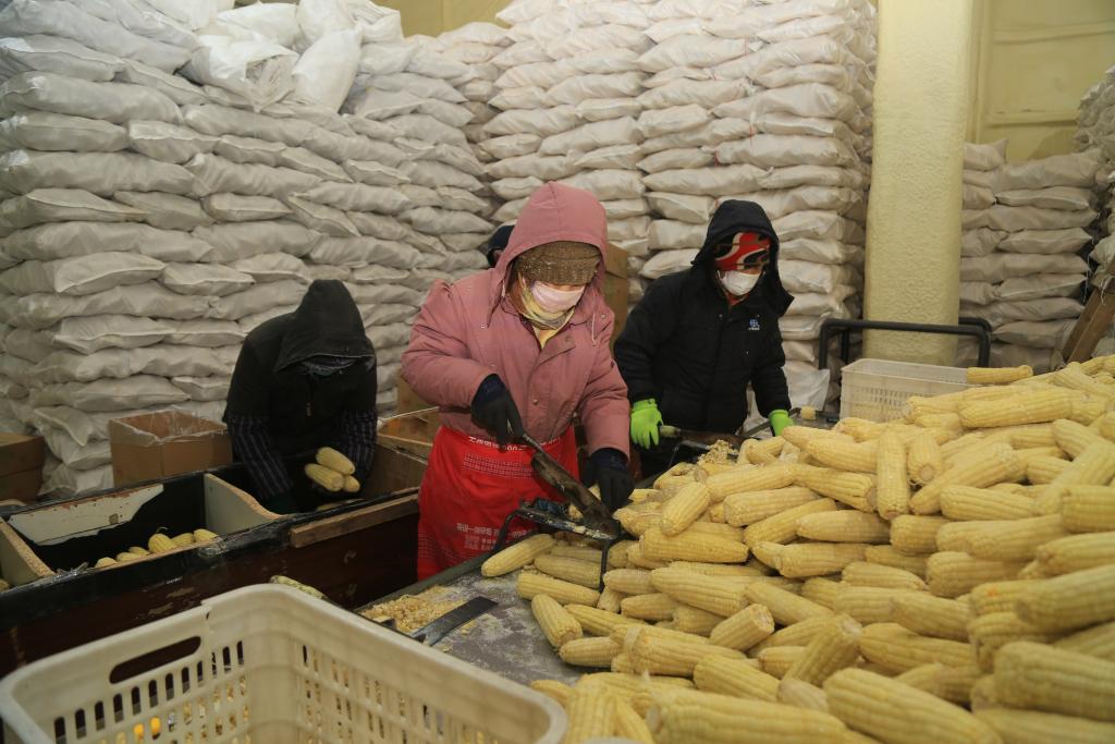 受宠的年货还有产自寒地黑土的鲜食玉米。在位于鸡西市鸡冠区红星乡红胜村的富强青食玉米种植专业合作社,村民正在冷库里忙着将玉米加工、分装、打包。合作社主要经营甜糯玉米,年产量600多万穗。