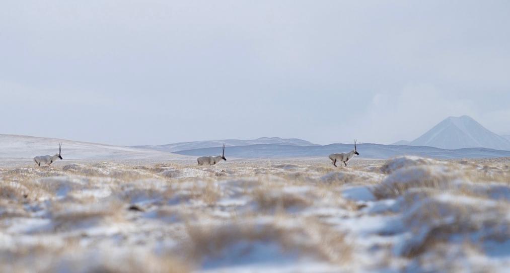 唐古拉山腹地的藏羚羊(2月2日摄)。新华社记者 普布次仁摄
