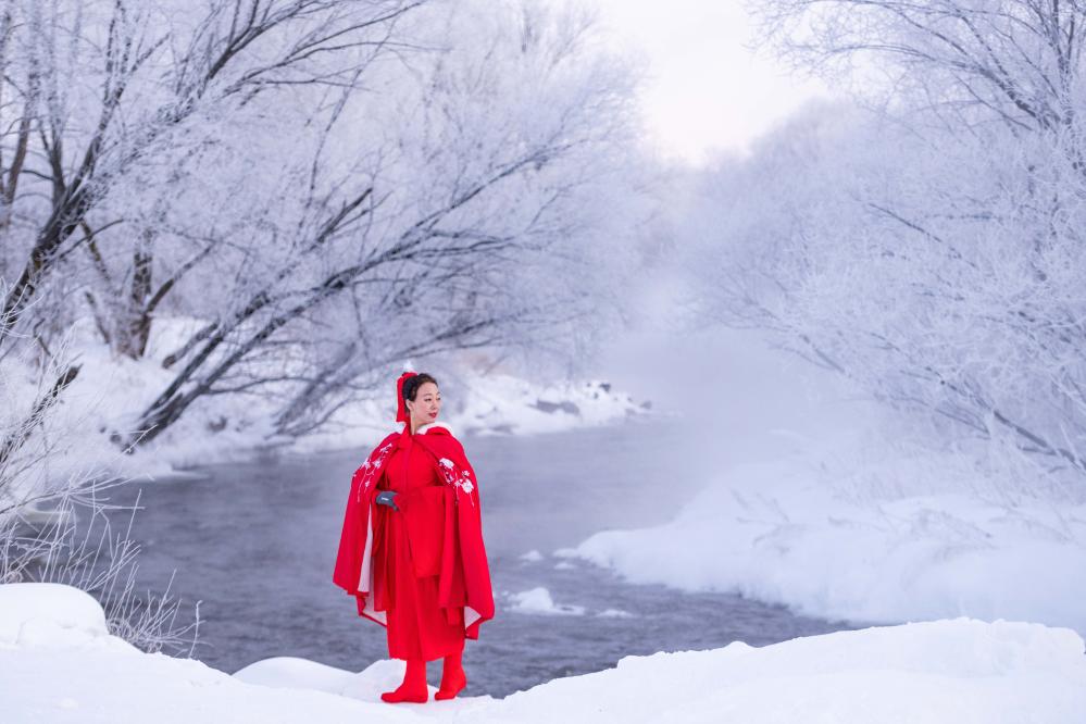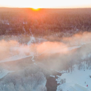 立春已过,地处黑龙江省北部的逊克县克林镇平台村仍寒意逼人。库尔滨河沿平台村流淌而过,氤氲水汽在低温中升腾,凝结在沿岸的树枝之上,造就了绵延十余公里的雾凇梦幻景观。