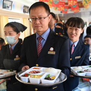 他值乘的G7584次列车每天都要售卖上百份“定制套餐”,旅客可以在手机上一键挑选地锅鸡、狮子头等地方美食。到站后,热气腾腾的饭菜就送到了座位。