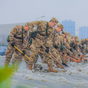 2月3日夜至4日,湖北省武汉市普降大雪,武汉天河机场双跑道临时关闭,导致航班大面积延误或取消,大量旅客滞留机场。武警湖北总队武汉支队官兵闻令而动,积极帮助机场清扫停机坪积雪,全力保障航班恢复运行。经过10多个小时连续奋战,成功确保几十个停机坪正常进出。