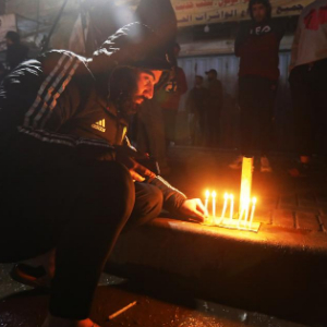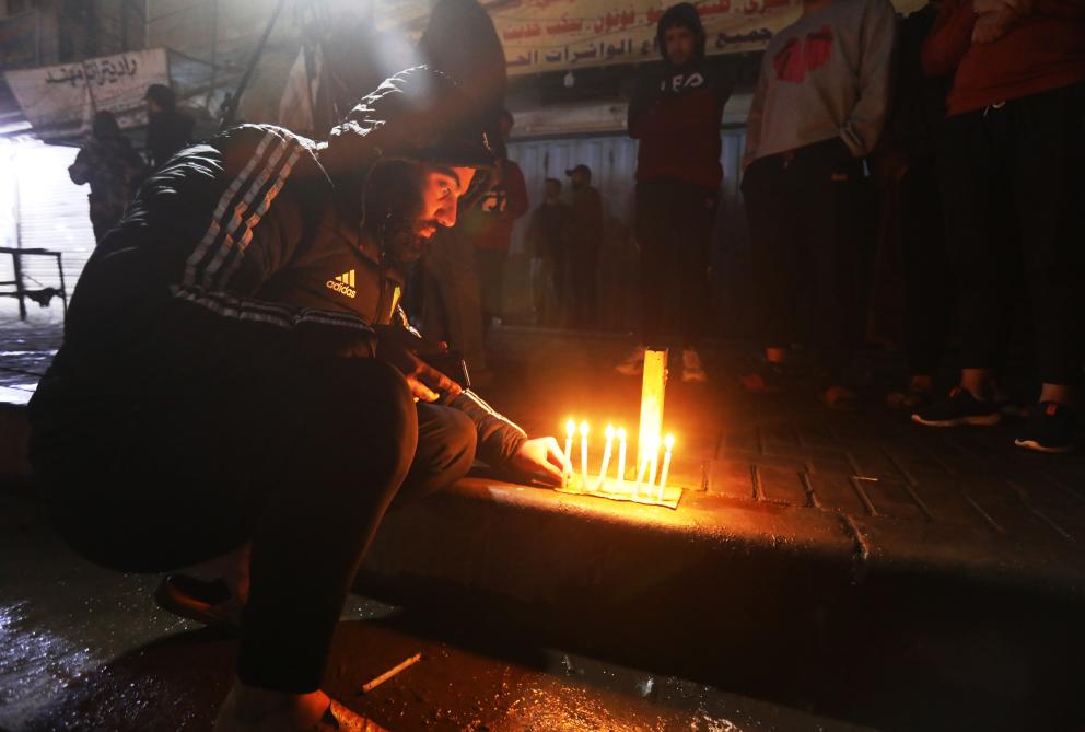 2月8日凌晨,一名男子在伊拉克首都巴格达的无人机袭击事件现场点燃蜡烛悼念遇难者。 新华社发(哈利勒·达伍德摄)