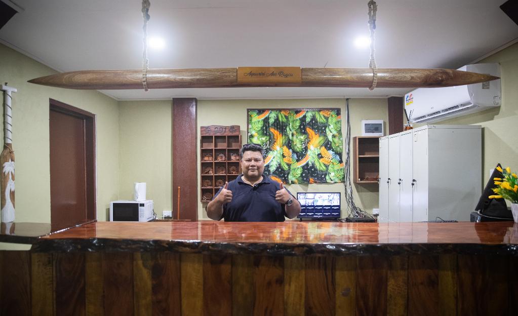 2月2日,客栈老板丹尼尔在瑙鲁岛东南部的“阿夸里里”客栈内。