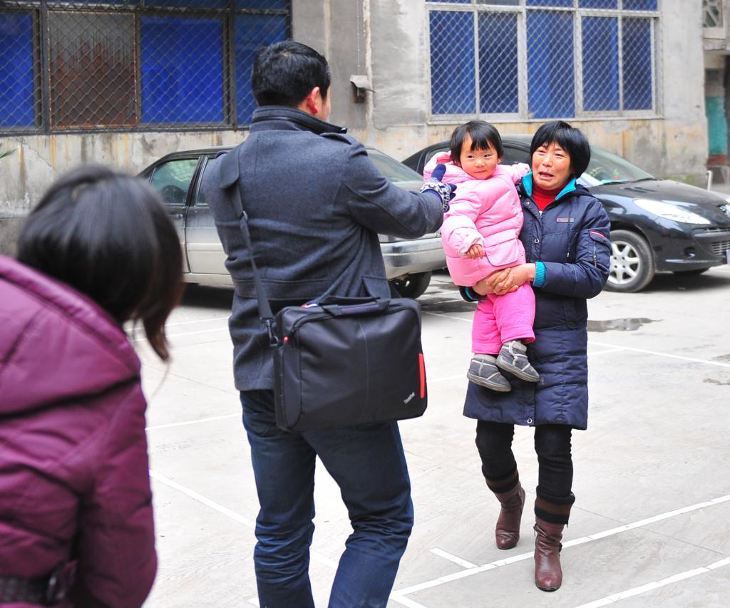 2011年1月24日,湖北恩施土家族苗族自治州鹤峰县外出打工的田仕彬夫妇回到家中,女儿田雅菲和奶奶跑出来迎接到家的夫妻俩。新华社记者 程敏 摄