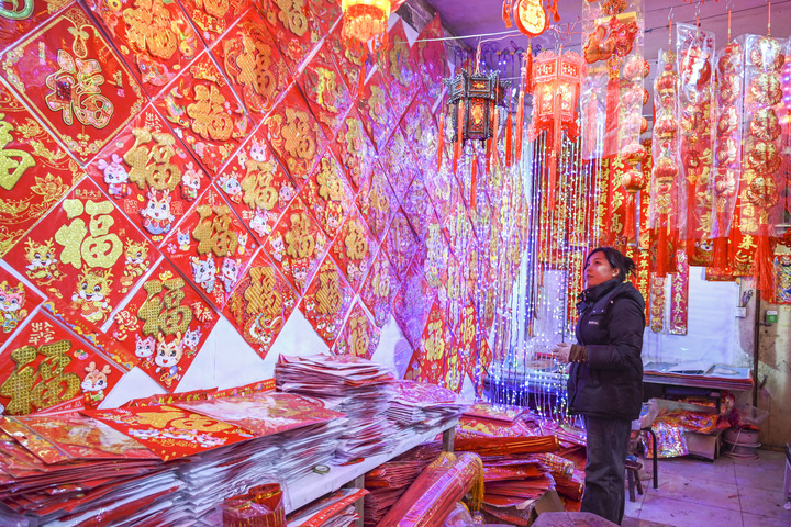1月19日,市民在北京一商场内选购春节装饰品。新华社记者李欣摄