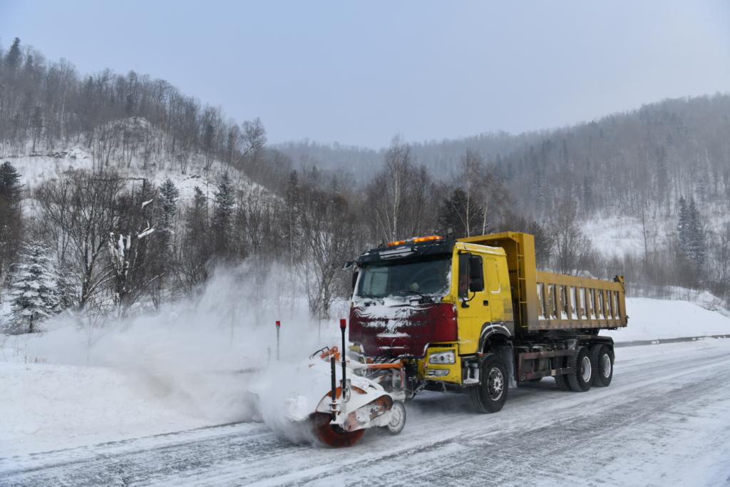 清雪车在通往雪乡景区的公路上作业。 (受访者供图)