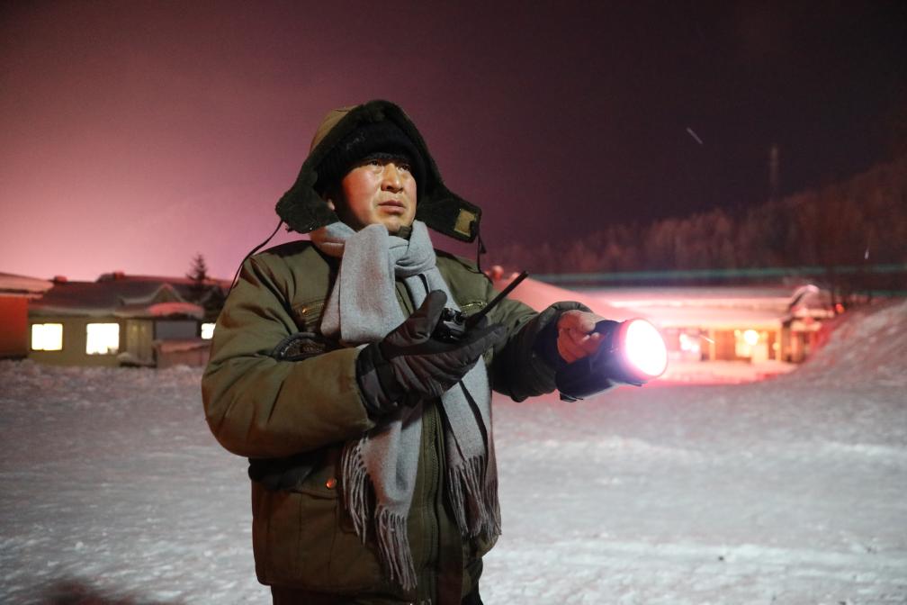 夜里气温经常低于零下三十摄氏度,即便裹得只露一双眼睛,七个小时的夜巡还是要由孟宪文和同事分两班接力完成,“一个班三个半小时,要不然根本坚持不下来。”孟宪文说,他已经数不清在夜里帮助过多少游客,“我们尽力让游客满意”。