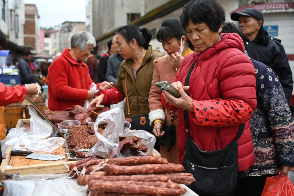 这是2月8日在龙岩市武平县十方镇拍摄的“圩市”。新华社记者周义 摄