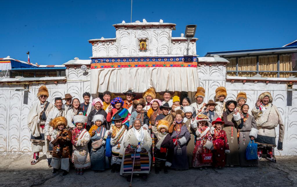 2月10日,斯曲旺姆(前中)和家人拍摄全家福。