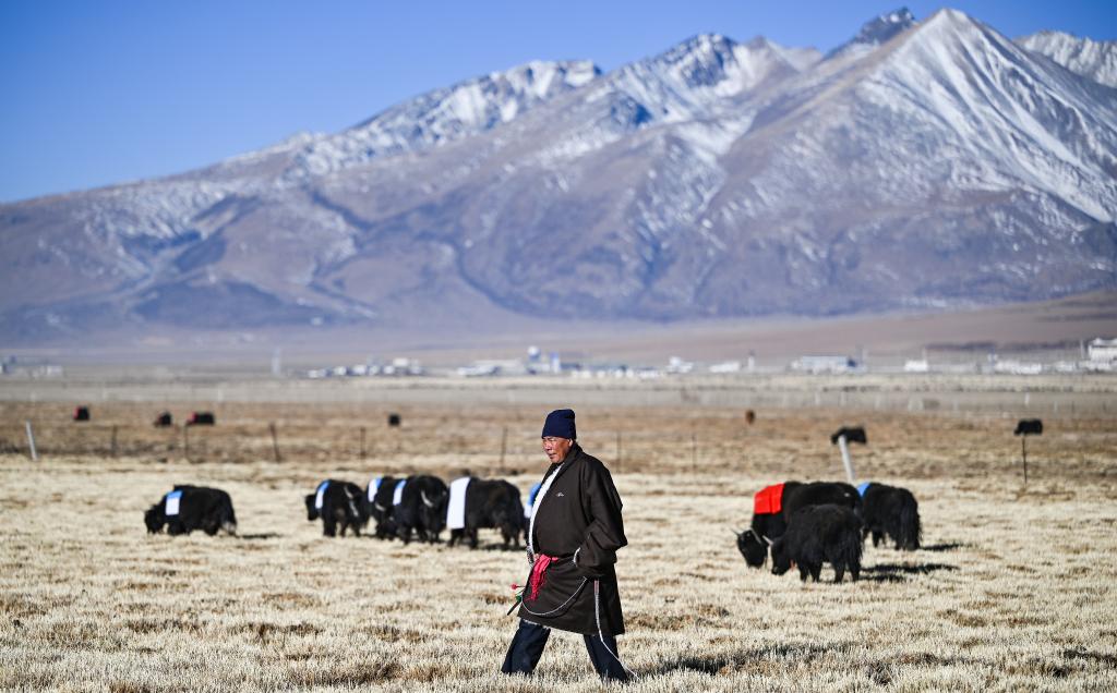 2月10日,斯曲旺姆的儿子索朗罗达将牦牛赶到牧场上。