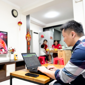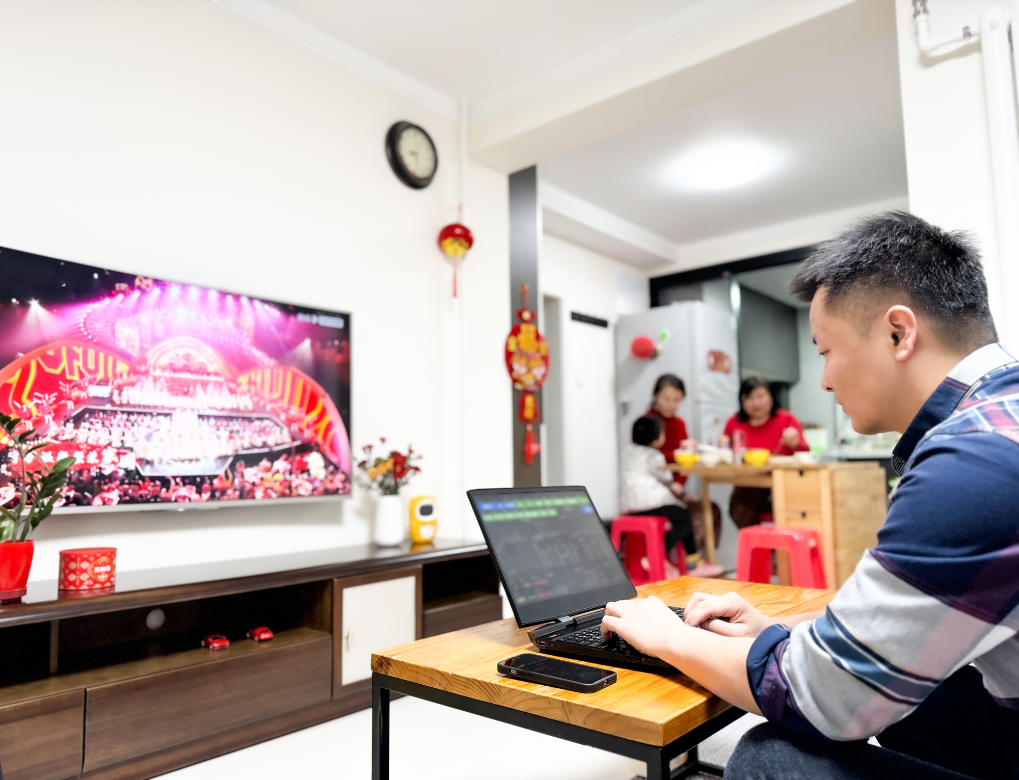 张宏斌通过电脑、手机在家实时监测卫星。(受访者供图)