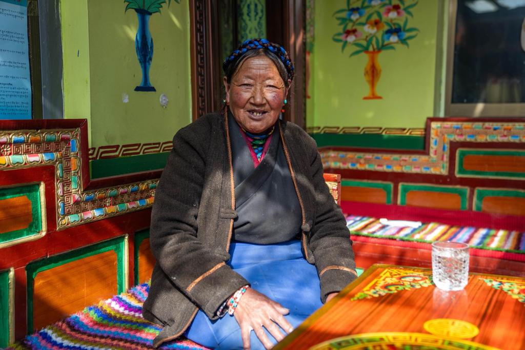 措姆是村里第三高龄的人,谈说起村里的变化,她有很多话要说。“现在的日子幸福,冬天也不怕风雪……真心感谢党的好政策!”