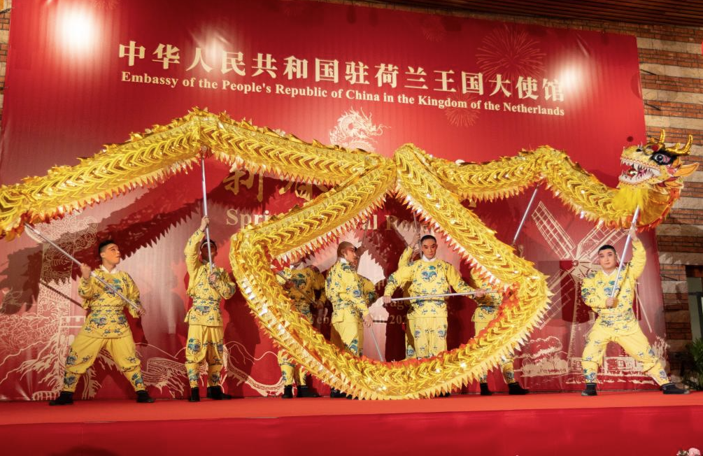 中国驻荷兰大使馆举办新春招待会。荷兰外交部亚大司副司长威廉姆斯在招待会上祝龙年和谐、和平与繁荣,表示期待荷中进一步加强合作。